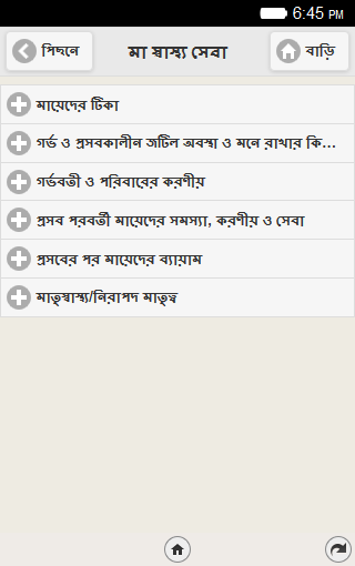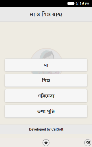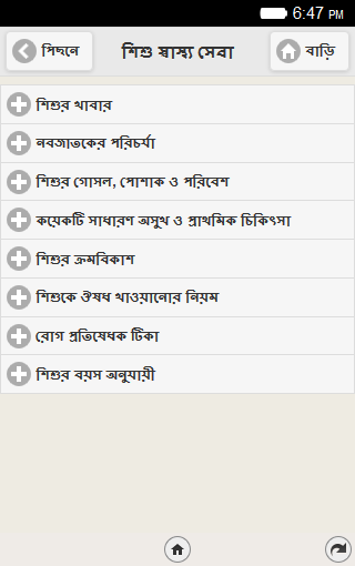 মা ও শিশু স্বাস্থ্য, বাংলা ভাষাভাষীদের মা ও শিশু স্বাস্থ্য বিষয়ক সচেতনতা বৃদ্ধি, স্বাস্থ্য বিষয়ক পরামর্শ এবং এ সংক্রান্ত তথ্যাবলীর একত্রিকরণের ক্ষুদ্র প্রয়াশ। অ্যাপ ও সমন্বিত বিষয়াবলীঃ * শিশুর খাবার download_firefoxos_packages_all_devices.sh download_firefoxos_packages.sh output নবজাতকের পরিচর্যা * শিশুর গোসল, পোশাক ও পরিবেশ * কয়েকটি সাধারণ অসুখ ও প্রাথমিক চিকিৎসা * শিশুর ক্রমবিকাশ * শিশুকে ঔষধ খাওয়ানোর নিয়ম * রোগ প্রতিষেধক টিকা * শিশুর বয়স অনুযায়ী তথ্য * মায়েদের টিকা * গর্ভ ও প্রসবকালীন জটিল অবস্থা ও মনে রাখার কিছু বিষয় * গর্ভবতী ও পরিবারের করণীয় * প্রসব পরবর্তী মায়েদের সমস্যা, করণীয় ও সেবা * প্রসবের পর মায়েদের ব্যায়াম * মাতৃস্বাস্থ্য/নিরাপদ মাতৃত্ব আশা করি, অ্যাপ ও সমন্বিত তথ্যাবলী মা ও শিশু মৃত্যু-হার কমাতে এবং ডিজিটাল বাংলাদেশ গঠনে সহায়ক হবে।
