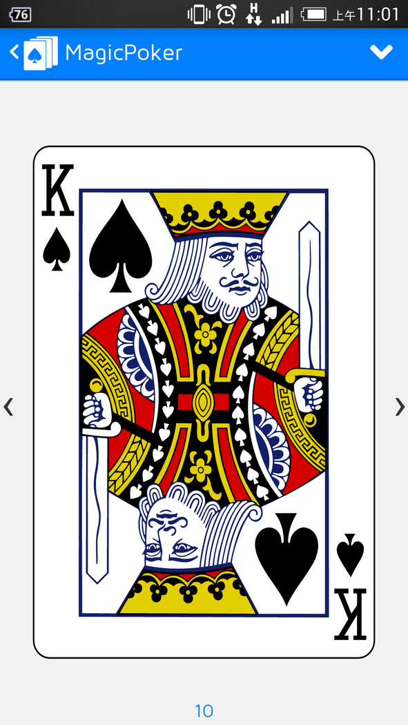 On Firefox os, the best and useful App about magic:Magic Poker!! ------------------------- The most basic effect:Your phone flips to face down. Let the audience slide cards in your phone freely, and can stop when the audience want. Finally, the playing card the audience stopped on your phone...goes magician's prediction! !Effect is extremely strong! ! In addition, can also match your routine to perform, so make your routine more abundant. What are you waiting for? Quickly download Magic Poker to enjoy the charm about magic, and let the audience keep the deepest impression with you. ------------------------- ● Simple and easy to use ● Cannot set in advance ● The audience can check out after the performance ● Can perform repeatedly ● From sliding cards with flipping phone face down to flipping back the phone, you can not touch phone completely and you are clean ● All free and permanent free<br>● Full-screen browsing with the test quality<br>● Smooth sliding experience ● Concise interface ------------------------- ● If you like Magic Poker,please Marketplace praised and rated as a support for me ● Also hope to perform and promot Magic Poker!! ● Your positive comments are absolutely able to encourage and help me! ! ● If you need any help, please contact me directly ● With your support I will be able to develop more Apps