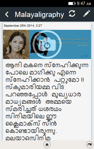 Unforgettable Malayalam Quotes, Malayalam & Caligraphy. Using this app you can get cool dialogues and images which can be used as facebook cover pics and comments. Are you a malayalee, Then this app is for you.