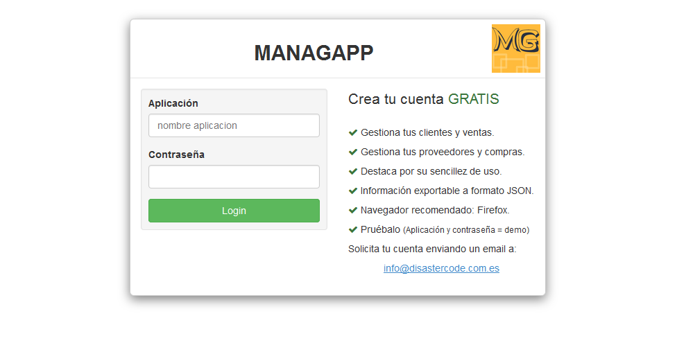 Aplicación que permite gestionar los datos de clientes y proveedores, así como de las ventas y compras, de una manera muy práctica y sencilla. Toda la información generada se puede exportar a formato JSON, por si en el futuro se desea migrar a cualquier otro sistema.