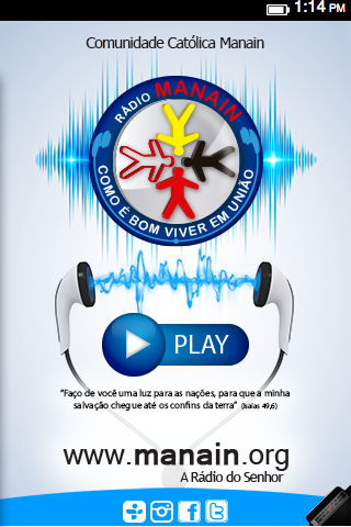 Radio Chegou agora o mais novo aplicativo de radio da Comunidade Católica Manain : Radio Manain , com o aplicativo você tem musicas , ministração e palavra. baixe logo. Keywords Comunidade Católica Manain , Rádio Manain , Manain , radio manain , rádio manain , caruaru , rádio , aplicativo de radio , radio brasileira , radio do brasil , musica religiosa , radio catolica , manain. Mobile Radio App (www.appradio.pro).