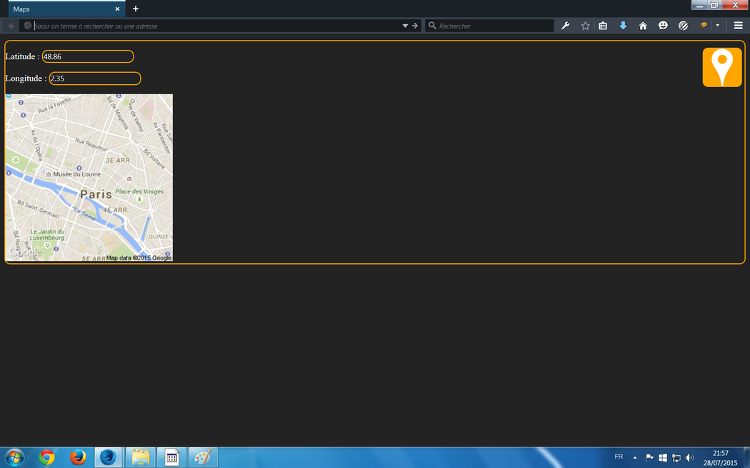 *search bar (write for example paris and click on location icon or maps type choice !)