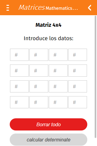 Resolución de ecuaciones simultáneas, determinantes y ecuación de segundo grado. Gracias por descargar MathematicsApp. Para nuestros usuarios: Estamos desarrollando una nueva versión de MathematicsApp, necesitamos de su ayuda. Por favor dejar un comentario y opina acerca de que opciones te gustaría que la futura aplicación tenga.