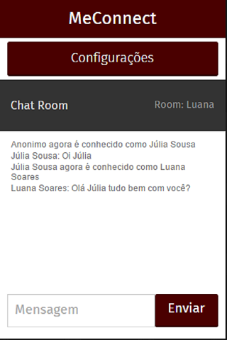 Conecte-se com amigos ou com pessoas que você mais gosta com o MeConnect,Com o MeConnect você não precisa ir até a casa de seu amigo para conversar com ele.Basta vocês estarem na mesma sala de chat e conversarem a vontade,pois o aplicativo é gratuíto para sempre!Seu amigo não precisa ter um Dispositivo com Firefox OS para conversarem,Vocês podem conversar também no Android,no Windows 8.1,no Windows Phone,no Firefox OS,no Edge OS e em breve no navegador web.