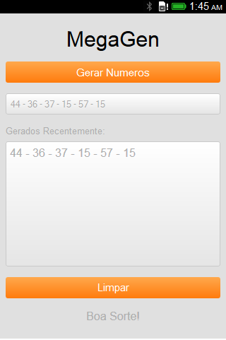 Gerador de números aleatórios para mega-sena. Esse gerador vai gerar alguns números aleatórios no formato da mega-sena, esse aplicativo não garante que os números gerados serão corretos e sorteados.
