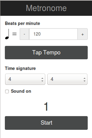 * Beats per minute can be set in one of three ways: (1) Entering a number directly into the top input box (2) Pressing the '+' and '-' buttons either side of the input box (3) Tapping the 'Tap Tempo' button two or more times * The time signature defaults to 4/4, but can be changed to any simple (4) or compound (8) time required. * The audio tick can be toggled on/off as required.