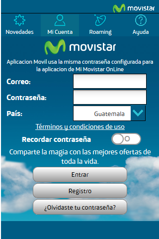 Ahorra tiempo con nuestra App, que te permite consultar y gestionar tus servicios desde donde te encuentres de forma segura y ágil. En Mi Movistar podrás consultar tu saldo, acceder a información de tu línea, comprar paquetes, saber cuantos minutos te quedan y mucho más desde la comodidad de tu smartphone o tablet. Servicio disponible solo para líneas de movistar Centroamérica, prepago y postpago. Para atenderte mejor, en cada mensaje que envíes a nuestra cuenta de soporte no olvides incluir tus datos de contacto y el país donde has adquirido tus líneas Movistar.