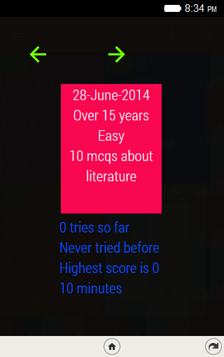 Time to defeat the MCQs! This app allows you to answer pre-created MCQ papers downloadable for free at MCQ Paper Store. What's more, this app includes three papers by default so you can experience what I'm talking just after downloading