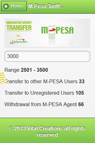 This app helps you know the tariffs that wili apply when you are transaction on mobile money platforms (Mpesa for now);No description available