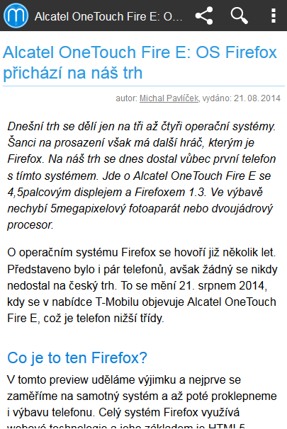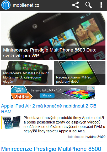 Mobilní stránka redakčního serveru MOBILENET.CZ , jedná se o neoficiálního klienta