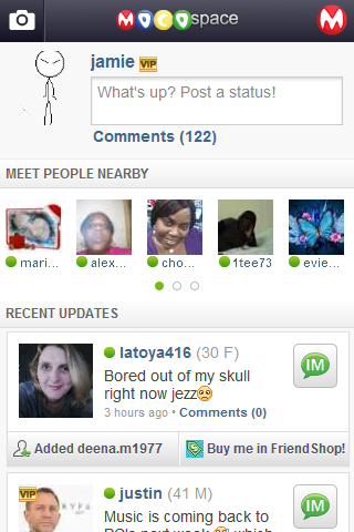 Meet new people nearby, chat in 100's of rooms, play games, music and more, FREE! Join the millions of people on MocoSpace who chat, meet new people, play games, flirt and even fall in love! No matter who or what you're looking for, there are thousands of REAL people online right now. Free to download and - unlike other apps - free to connect with people too! MocoSpace is the place to: - Chat in any of our 100's of chat rooms and discussion forums, or start your own 1-1 or group chat - Meet people near you, instant message, and make new friends - Join the largest community of Hispanics / Latinos and African Americans - Customize your profile with Videos, Music, backgrounds, slideshow animations and more! - Meet people playing dozens of FREE games including Bingo, Poker, Slots and more - Send eCards for the holidays, birthdays and any other occassion - Find friends, casual dates, serious relationships - you're in control