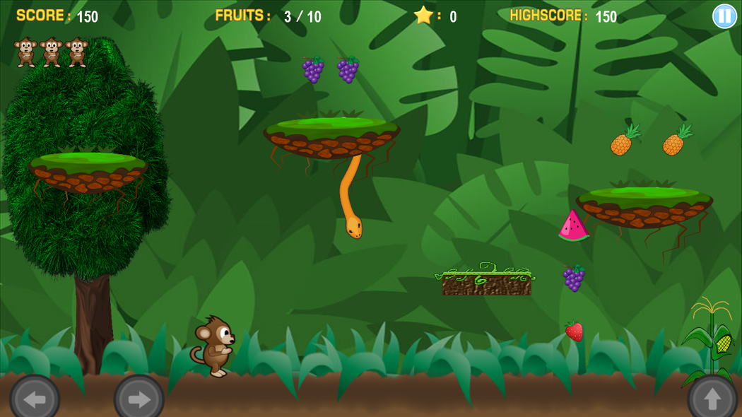 Monkey rage is a cool adventurous Game. Hungry Monkey looking for food in jungle.start picking up all fruits and Survive against enemies.More levels and more fun.Find Mystery Gems and unlock new level.Best and Fun game to play