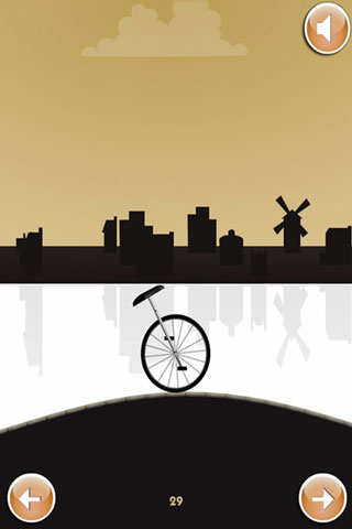 Monocycle is a fast paced arcade game where you have to balance not on a regular bike but on a monocycle. Once the game starts you can only influence if the monocycle shall lean forward or backward. If you lean too much to one side you will inevitable fall and you will break the monocycle. Now you might think it would be a good idea to drive very slowly with almost no slant but this is very, very wrong. You need every little bit of momentum to get past the hills. Otherwise you will come to a halt or even go back. Play Monocycle now for free and show your skills!