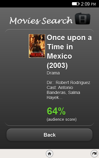 This application is a movies data base, like imdb and rotten tamatoes using the rotten api, so you get information about any movie in the world. Very simple app and easy to use. You can get movie information in a seconds. Enjoy !