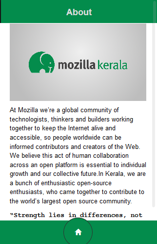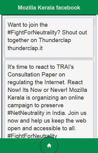 Mozilla Kerala is a part of the global community of Mozilla Foundation. This is an app to stay updated about the latest events and news from Mozilla Kerala from the Mozilla Kerala Facebook page and blog. Using this app, you will never miss an update from the Mozilla Kerala community. *Get the latest Mozilla Kerala Facebook posts *Get the latest Mozilla Kerala blog posts *This app has the contact details of all the core community members, so that you can easily connect with them. *Stay connected with Mozilla Kerala IRC Dedicated to all my dear Mozilla Kerala members and other Mozillians... Made With <3 App Source: http://gautamkrishnar.github.io/mozillakerala #firefoxstudents