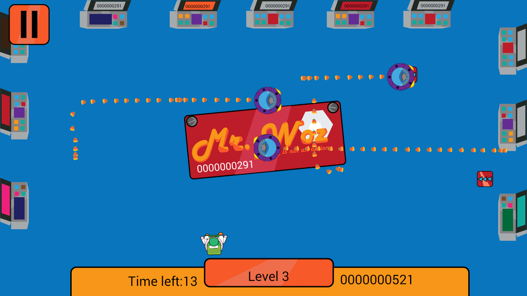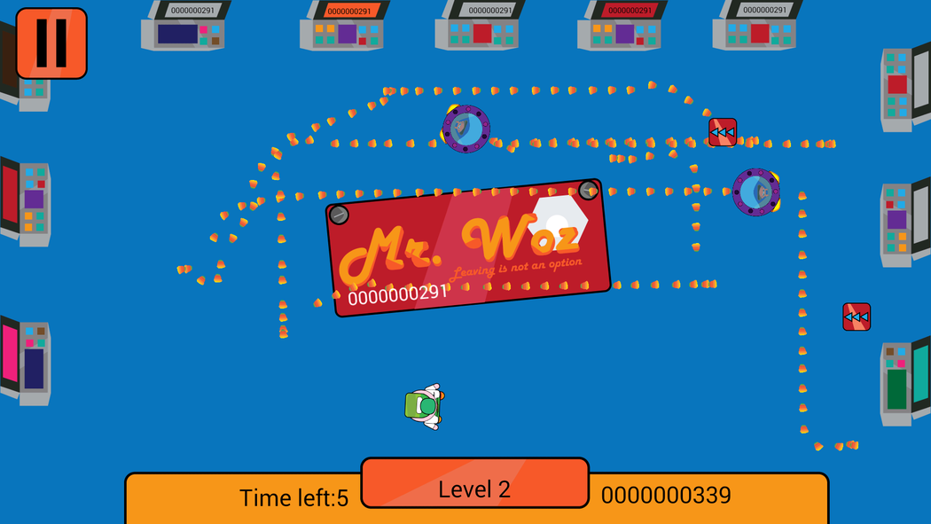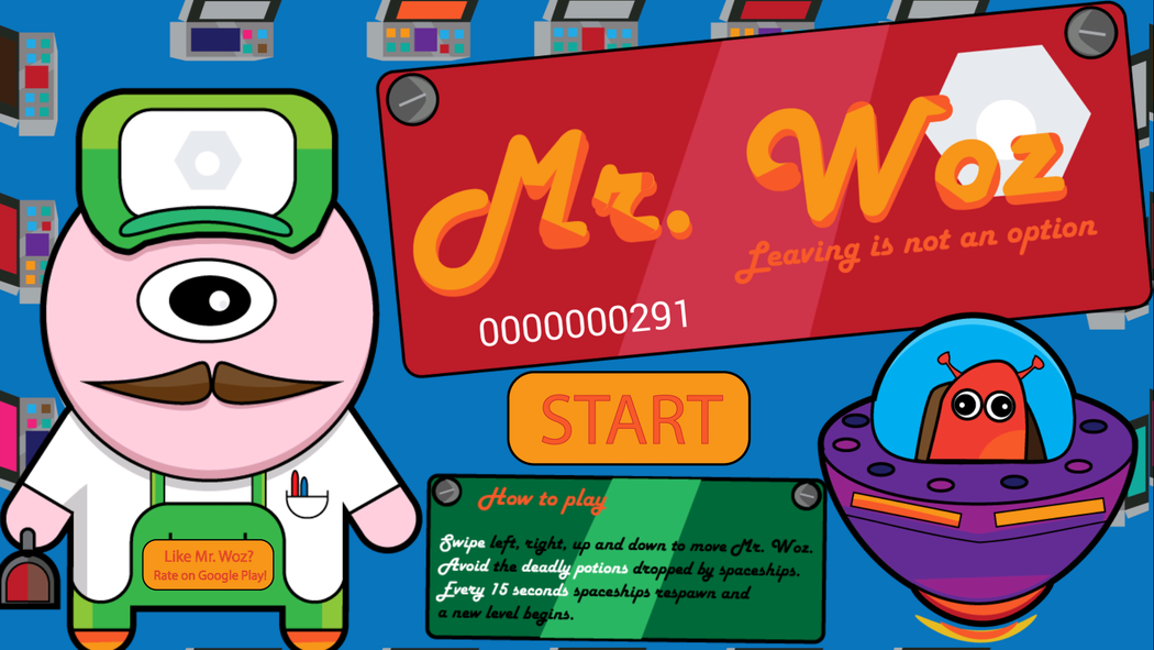 Mr. Woz space garage is full of bad spaceships dropping deadly potion. How long can you survive while more spaceships keep coming.