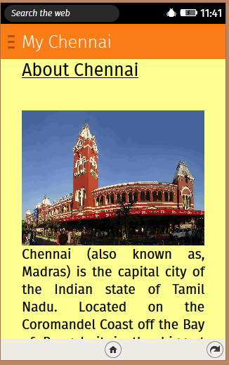 This App tells you everything about Chennai from History,Cuisine,Famous Personalities to popular Tourist Spots.Must Try App for Tourists. #firefoxstudents