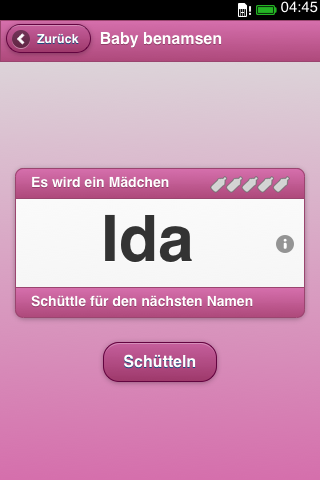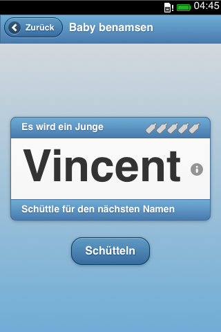 Name your babe - The encyclopedia of names, to find THE name for your baby. It has never been so easy to find the perfect fitting first name for your babe! The app shows you a first name popular in your region. You don't like it? Simply shake your smartphone, and you will get a new name. THERE IS NO EASIER WAY! All features at a glance:
