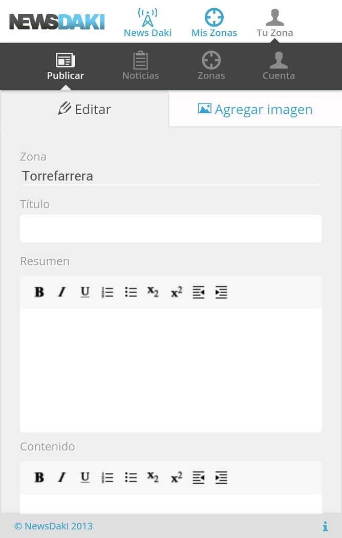 CREA TU ZONA Ya puedes publicar y leer las notícias de tu zona.....siiiii.....las que no aparecen en ningún otro lugar!!! Escoge la zona geográfica a la que pertenece la notícia que quieres publicar; escoge también el barrio y hasta el grupo! .... o bien crea uno nuevo.