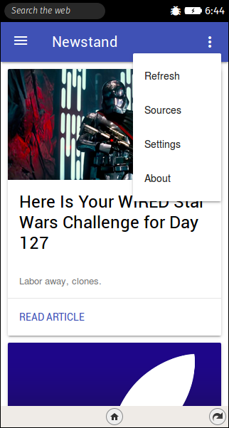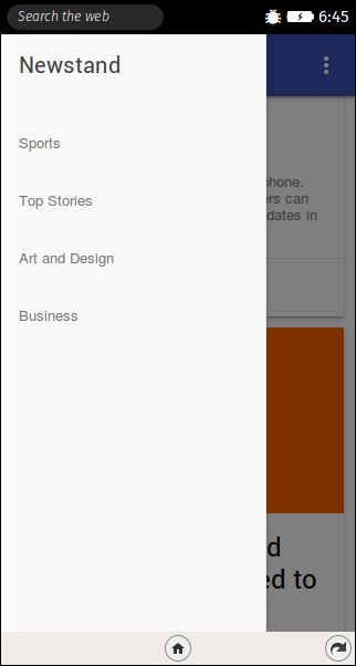 This is a Newstand app. A collection of articles from various sources. The sources are categorized into various types and can be seen in the drawer.