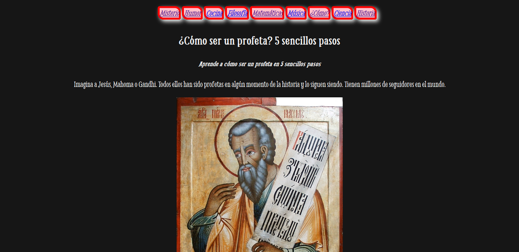 Nexo de conocimiento. Encuentra información interesante sobre: misterio, ciencia, matemáticas, historia, cocina, filosofía, música y mucho más acompañado de la sección de humor y de ¿Cómo?