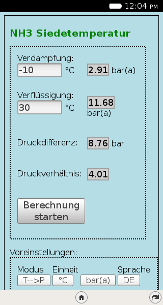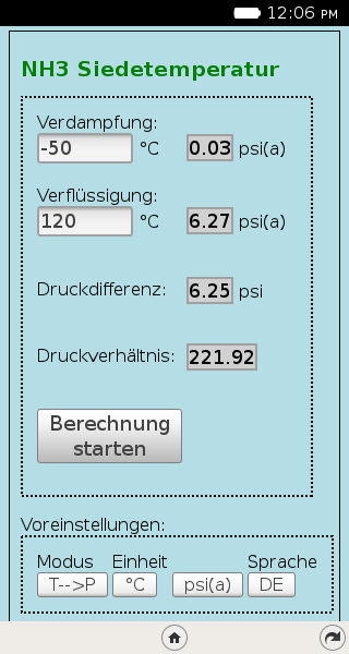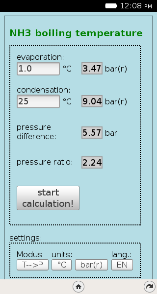 This tool informs about boiling and condensing temperatures and pressures of Ammonia (NH3) Ammonia NH3 is a natural refrigerant without negative effects for the enviroment, ODP and GWP = 0! Ammonia is one of the most effective refrigerants.
