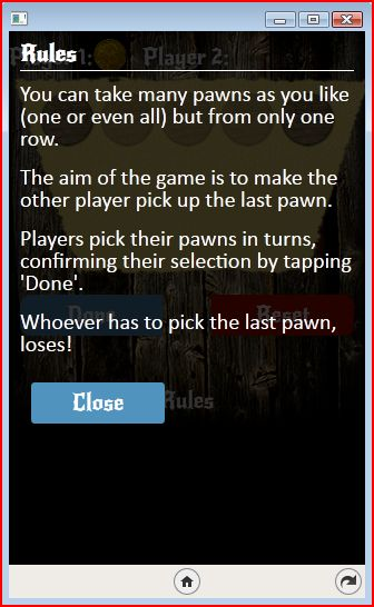Nim Medieval Board Game for Two Plan, scheme, plot to see through the other live player’s strategy and outsmart them in our medieval battle of wits! - A mathematical strategy game for two players (playable on one device) - Easy rules but almost infinite number of strategies will keep you coming back for more - It served as basis for numerous mathematics theses The game is said to have originated in China and earliest European records date from the turn of XV and XVI century. Its name stems from German word "Nimm" (to take), though English language had the verb nim, of the same meaning and nowadays obsolete.
