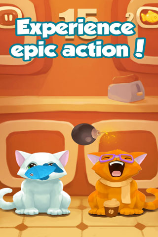 Give these hungry cats a helping hand and feed some delicious fish! Tap and hold to open the mouths of the Nom Nom Kitties to feed them with an endless supply of fresh and tasty fish. The more fish you make the cats eat, the more points you accumulate. But be careful and stay focused to avoid the bombs that fly around at times. You surely don't want the cute cats to burst in an explosion, do you? If you manage to grab some goldfish, you will be able to unlock more cute kittens like the world famous Catstein or Bloody the cat vampire in this free HTML5 game.