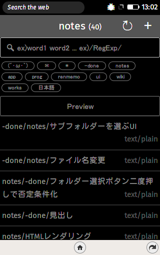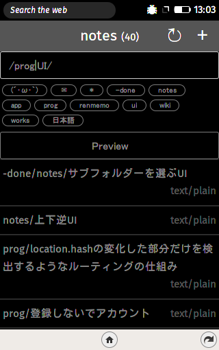 # Notepad:01 Notepad (Dropbox accound required) for Firefox OS 2.0+. When first launching, Please tap "Auth(popup)" button to authenticate the app. ## Specs - Using Dropbox for storage (YOUR_DROPBOX_FOLDER/Apps/Notepad01/*) - Note to Note Link [[note title]] >>>note title → note title - Full text search (RegExp available)