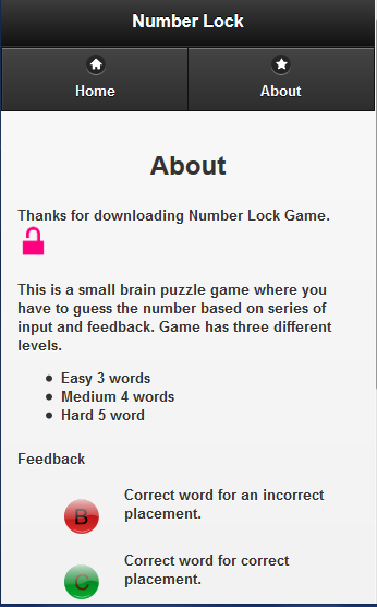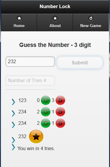A fun brain and math puzzle game where you have to guess the number based on series of input and feedback. Game has three different levels.This is a solo game as of now. Aim is to guess the number in minimal tries. Game supports three difficulty modes Easy, Medium and Hard.
