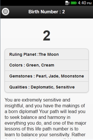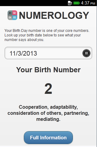 This is a Simple Numerology Application based on your Birth Date. Numerology has perhaps been around since humans first learned to count. Special significance attached to numbers or their position in a sequence can be found in most belief systems. Tags : Numerology, Simple Numerology, Best Numerology, Birth Numerology, Nice Numerology, Birth Number, Number Astrology, Astrology, Horoscope