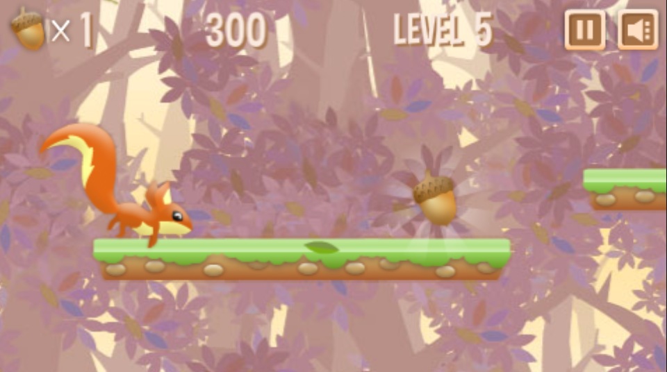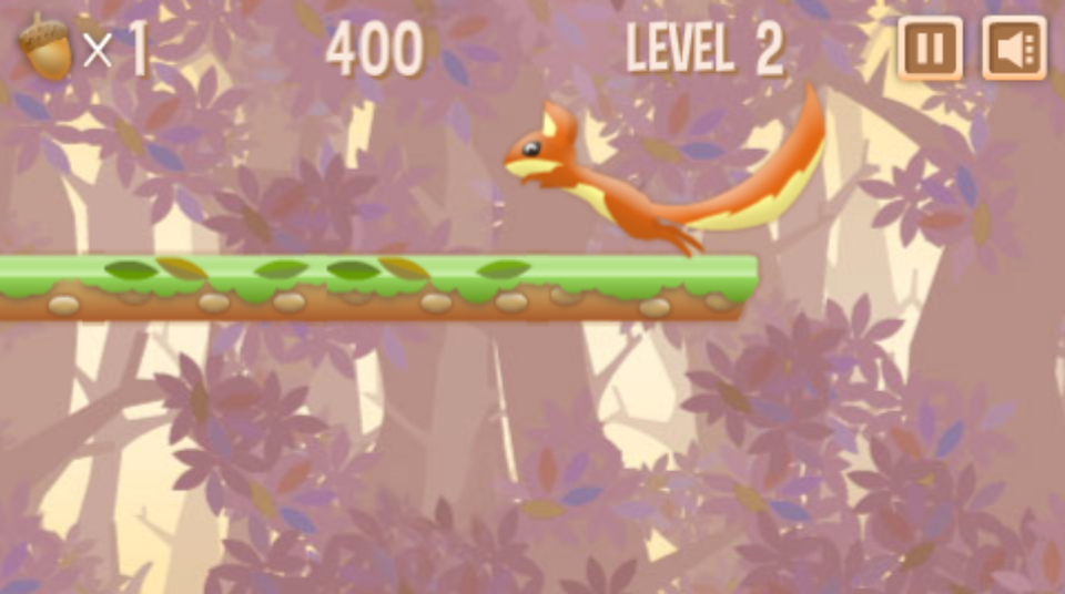 Run and jump as far as you can collecting nuts! Make it home safely and try not to fall off the branch!