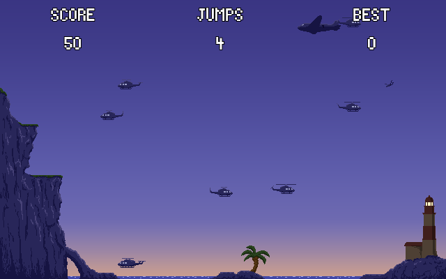 Oh Chute is a reimagining of classic arcade parachute games, where you must jump out of a plane, navigate the obstacles and land on one of the multiple landing zones. But it's not that easy! As everyone knows, helicopter pilots hate skydivers, and they'll do anything in their power to stop you! Oh Chute is a retro-styled game of skill that will test your patience and reflexes. Three stages bring varying levels of challenge, as you do your best to beat your high score.