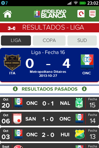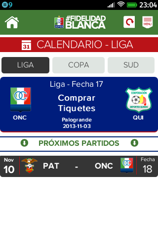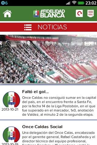Aplicación del blanco blanco del fútbol colombiano ¡Creada por hinchas para hinchas! Esta versión de la aplicación del Once Caldas, te permitirá encontrar de manera rápida, ágil y sin rodeos, toda la información que necesitas saber del conjunto blanco blanco de Manizales. Comparte a través de tus redes sociales, el orgullo de ser hincha del blanco blanco utilizando la etiqueta #OnceCaldasSomosTodos En esta aplicación podrás encontrar: • Noticias cortas y concretas sobre el presente del club • Resultados actualizados en tiempo real. • Estadísticas y tablas de posiciones de todos los torneos en los que el club se encuentra participando. • Calendarios con la información actualizada sobre los partidos que el club esté por enfrentar, en todos los torneos en los que se encuentre participando. • Información minuto a minuto de los partidos del club, con actualizaciones sobre todo lo que va aconteciendo en el campo, ¡EN TIEMPO REAL! • Información actualizada sobre el plantel profesional del club (posición, lugar y fecha de nacimiento, estatura, peso, etc). ¡Conoce y ten a la mano la lista de jugadores e ídolos que lo hacen grande! • Acceso directo a las redes sociales oficiales del club, donde podrás interactuar con otros hinchas como tu.