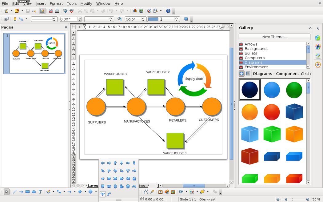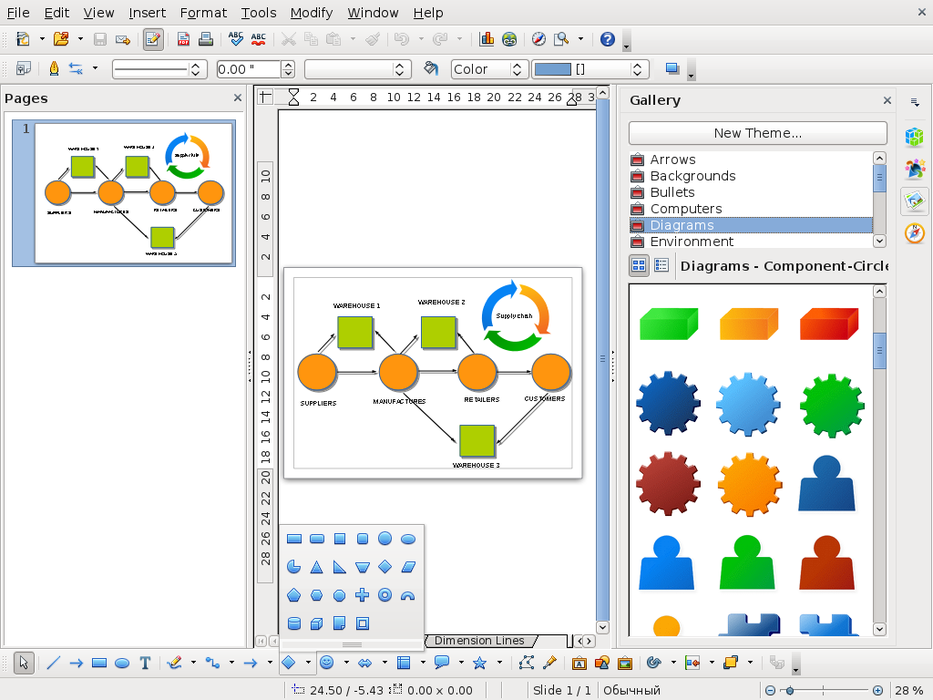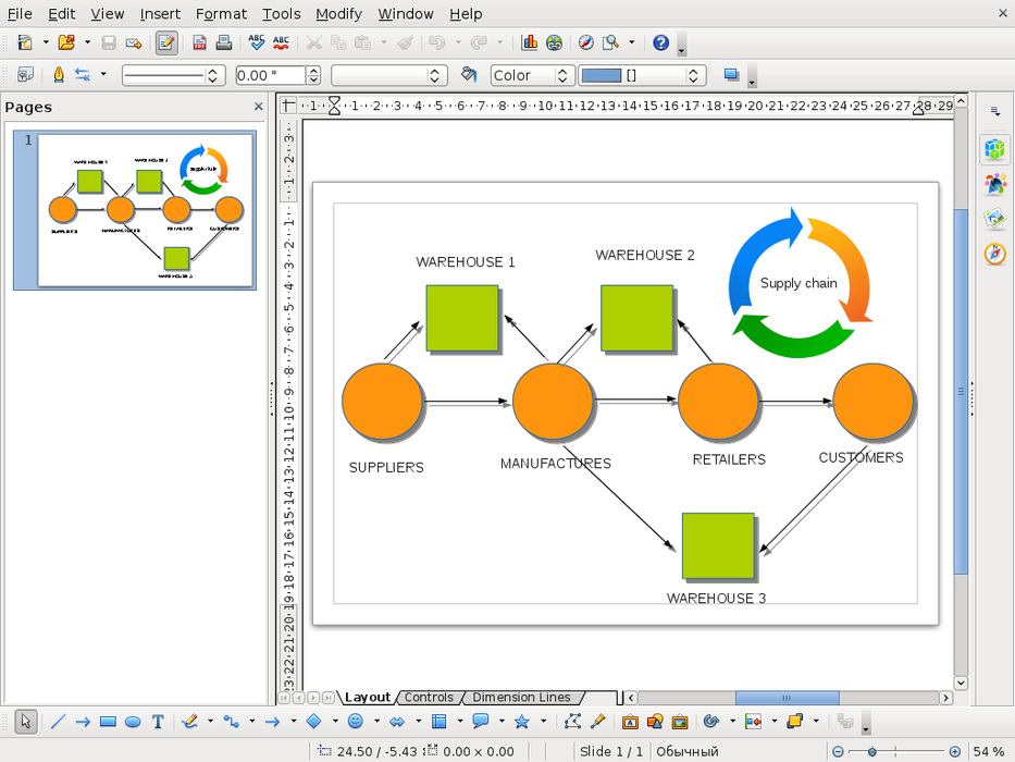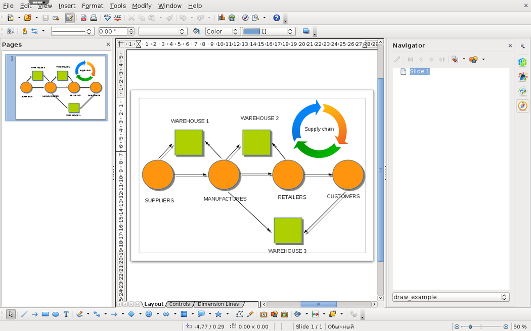 OpenOffice on rollApp is an online version of popular office suite. OpenOffice Draw lets you produce everything from simple diagrams to dynamic 3D illustrations. DRAW - from a quick sketch to a complex plan, DRAW gives you the tools to communicate with graphics and diagrams. With a maximum page size of 300cm by 300cm, DRAW is powerful tool for technical or general posters, etc. Manipulate objects, rotate in two or three dimensions; the 3D controller puts spheres, rings, cubes, etc. at your disposal. Arrange objects: group, ungroup, regroup, and edit objects while grouped. Sophisticated rendering let you create photorealistic images with your own texture, lighting effects, transparency, perspective, and so on. Smart connectors make short work of flowcharts, organisation charts, network diagrams, etc. Define your own 'glue points' for connectors to 'stick' to. Dimension lines automatically calculate and display linear dimensions as you draw. Use the picture Gallery for clipart; create your own art and add it to the Gallery. Save your graphics in OpenDocument format, the new international standard for office documents. This XML based format means you're not tied in to DRAW. You can access your graphics from any OpenDocument compliant software. Import graphics from all common formats (including BMP, GIF, JPEG, PNG, TIFF, and WMF). Use DRAW's free ability to create Flash (.swf) versions of your work.