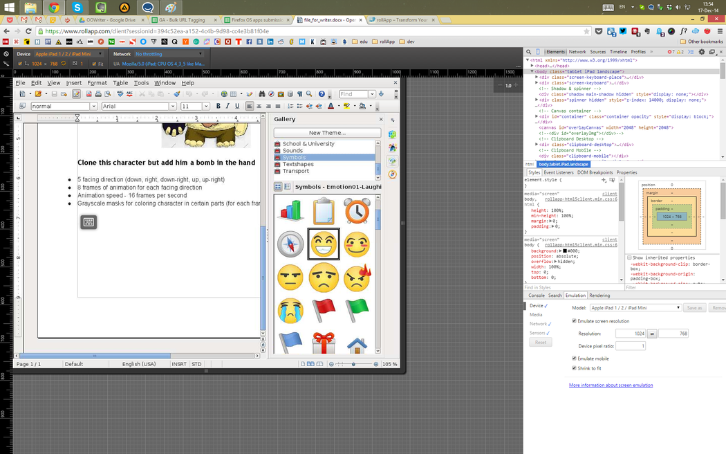 OpenOffice on rollApp is an online version of popular office suite. OpenOffice Writer is a word processor and publishing tool that allow working with different file formats, including .docx, and .doc. It's simple enough for a quick memo, yet powerful enough to create large documents, reports, and books. Open Office Writer is always with you on the move or at home: create documents, align pictures or diagrams, save files with minimal fuss, the same way you use desktop software. Plus, you get cloud access: OpenOffice, Office and other documents and files are easily accessible from your cloud storage: Google Drive, Box, Dropbox and OneDrive. Key features: - Wizards take all the hassle out of producing standard documents such as letters, faxes, agendas, minutes, or carrying out more complex tasks such as mail merges. You can also create your own templates, or download templates from the Templates repository - Advanced Styles and Formatting - Table of Contents & References ñ Increase the usefulness of your long, complex documents by generating a table of contents or indexing terms, bibliographical references, illustrations, tables, and other objects - Text frames and linking for publishing tasks like newsletters and flyers - Notes feature displays notes and comments on the side of the document. This makes notes a lot easier to read - AutoCorrect dictionary can trap typing mistakes on the fly, checking your spelling as you type. Writer can handle the use of different languages in your document too - AutoComplete reduces typing effort. It also suggests common words and phrases to complete while you are typing
