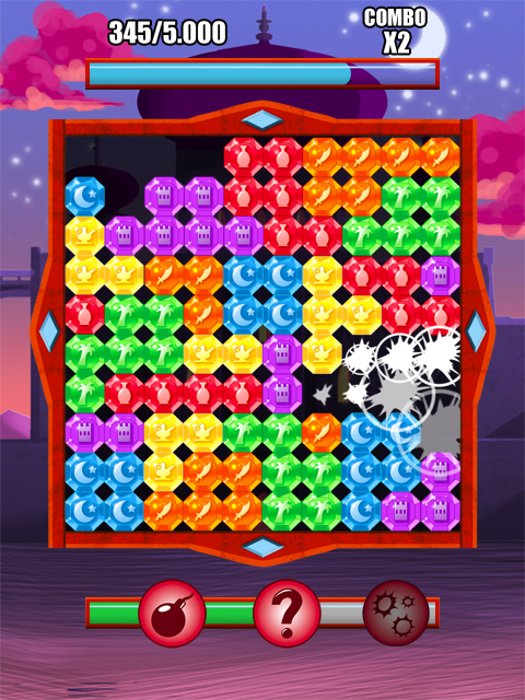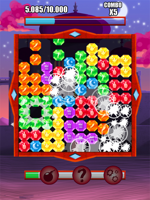 Enjoy a brand new diamond dash in the atmosphere of Oriental nights with Oriental Dash. Have a lot of fun with this puzzle game, its exhilarating rhythm and its beautiful graphics. Do your best to reach the highest score in two game modes that will constitute a diversified challenge. Oriental Dash is a match 3 game in which you must touch group of diamonds to make them explode. Chain explosions as fast as you can to get a fury mode and use your magical powers to earn a lot of points. Be careful, if you touch a group that contain less than three diamonds, it won’t explode! Show your superiority through two game mode. In the Time Trial Mode, you have two minutes to earn the biggest score while in the survival mode, you must reach an ever growing score. Until where will you be able to go? CARACTERISTICS -2 modes -Best score -Touch the screen to interact