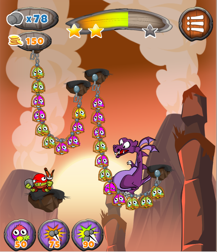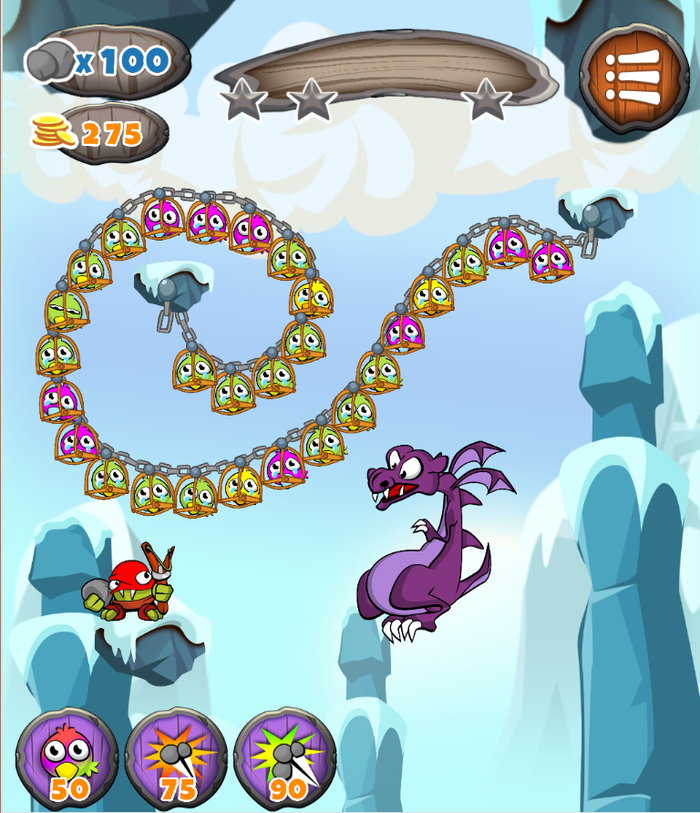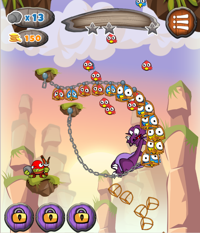 The hungry dragons have captured and caged all the birds of the realm. Join Pebble Boy, the little Orc, in his adventure to free them all. Pebble Boy offers a unique yet familiar match-3 puzzle game mechanic. Throw the pebbles at the cages to free the captive birds and trigger powerful chain-reactions as cages collide on their way up! Across 3 themed packs and 60 levels, unlock amazing power-ups such as the Triple-Shot and Color-Shot to help you free even more birds.