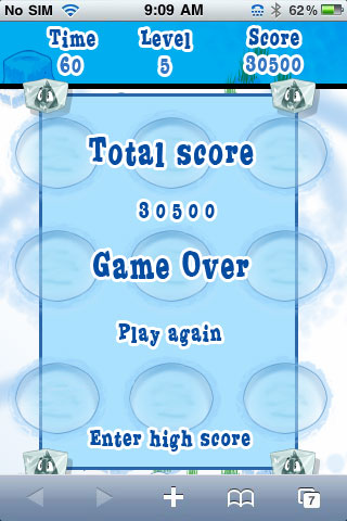 Penguin Pop is a fun an very addicting whack a Penguin game style. You must tap the penguins, fish and igloos when they pop up from underneath the ice.