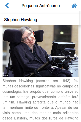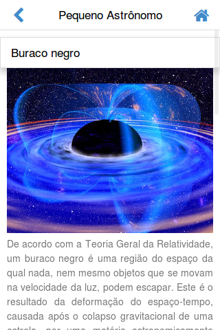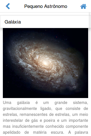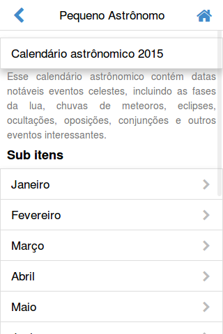 Esse aplicativo é um guia para iniciantes no mundo da astrônomia, nele você encontra informações sobre os corpos celestes, as principais sondas espaciais, o calendário astronomico de 2015, uma lista dos principais acontecimentos históricos, curiosidades e personalidades importantes para a astrônomia.