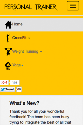 Personal Trainer is your online personal assistant teaching you the correct form, posture and methodology of exercises and workout routines. A custom workout builder to easily plan your workouts, bundled with tools such as Calorie Counter, BMI Calculator and others, help you get the best of Personal Training at your finger tips - all for free! Get a fab body and stay fit with in depth detail, step wise examples and benefit from the cumulative knowledge of Health Gurus from around the world.