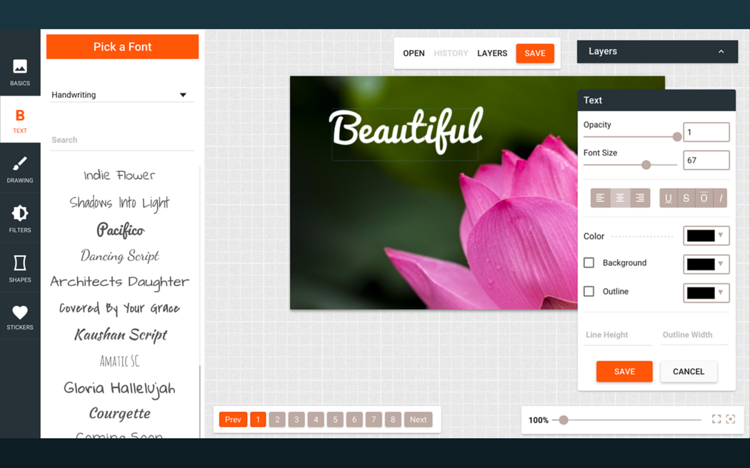 Make your images beautiful. Use gorgeous filters, cool stickers, 600+ fonts, shapes and more. Editing your favourite photos is now easier than ever before. MM Photo Editor has tons of image editing features. - Quickly crop, resize and rotate images - More than 600 fonts to choose from - Change text size, colour, opacity, background and outline - Freely draw anything you want with drawing tool - Enhance beauty of your images by applying photo filters - Wanna integrate a shape? Yes, we have it. - Who doesn't love stickers? We have a lot more for you. - Layered approach to photo editing - See history of every change made More coming in future!