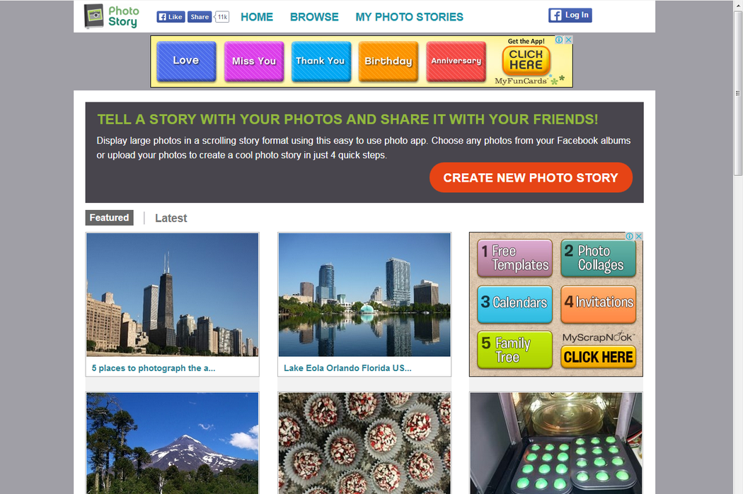 Photo Story lets you tell a story with your photos by creating a photo storyboard on any topic. Display large photos in a scrolling story format using this easy to use photo app. Choose any photos from your Facebook albums or upload photos to create a stunning Photo Story in just 4 quick steps. You can also view Photo Stories created by our community to gain inspiration for your Photo Story.