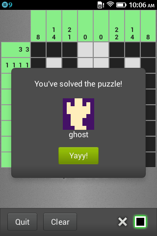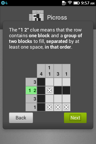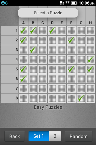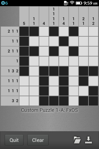 Picross is a game in which solving a puzzle creates a picture. Use the clues at the top and side to determine which blocks to fill in! This game includes 384 original 8x8 Picross puzzles, and a builder with which you can create your own puzzles.