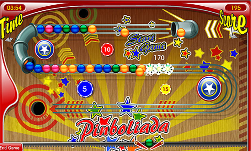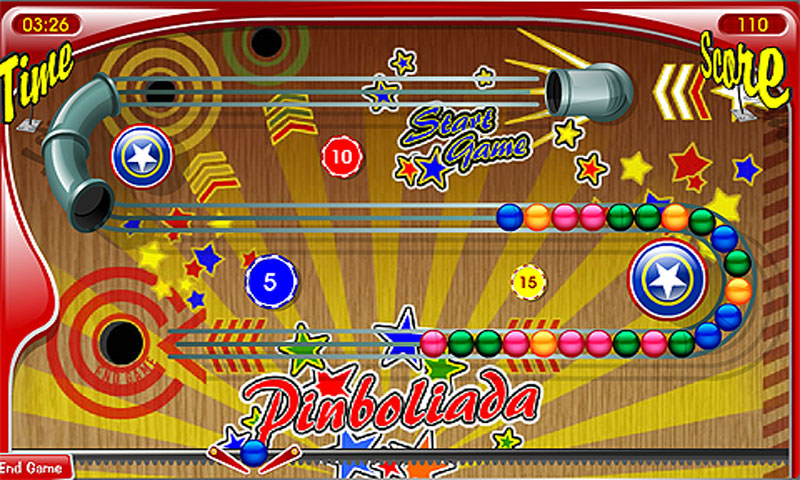 Pinball Color features a mixture of some genres. Take a pinch of pinball, a bit of Puzzle Bobble, and finally a Match Three component, and you’re done and ready to play!