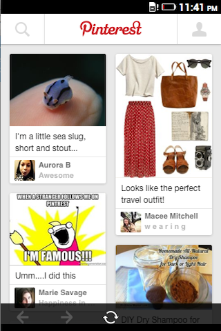 Pinterest is a tool to help you discover and plan things you want to do. When you find something that looks interesting, just Pin it! Pins are visual bookmarks that you organize and share the way you want. With Pinterest you can: • Plan projects—home remodels, car restorations, garden redesigns and other DIYs • Dream up your next trip—outdoor adventures, road trips with friends, family outings and exotic vacations • Collect your favorite things—illustrations, tattoo ideas, hilarious quotes, tech gadgetry and inspiring art and architecture • Save great ideas—articles to read, movies to watch, gifts to buy, fashion and beauty how-tos, food and recipes to cook, fitness tips and lifehacks • Get organized for a party—wedding decor, birthday themes, costume ideas and game day menus