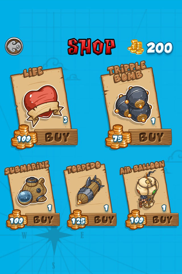 Amazing and fun pirate game. Shoot your opponents fleet with torpedo’s, triple bomb’s or dynamite from the sky. Get cool rewards when finding treasures. Buy more items in the shop and defend your pride as a pirate.