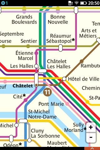 An easy-to-use map of Paris subway (Metro). History: - 1.1.0 : improved performance - 1.0 : initial release Features : - based on official subway map (credits: RATP) - works offline (connection is spotty when underground) - map is zoomable How to use: - zoom in: pinch-in or double-tap - zoom out: pinch-out or double-tap with two finger