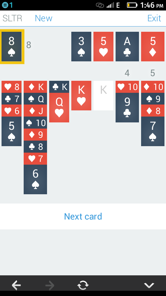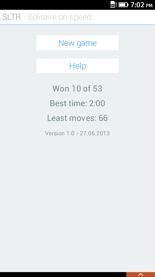 Minimalist Klondike Solitaire on speed. Play a quick round of Solitaire: Tap a card to select it and tap the target deck to move it. Features