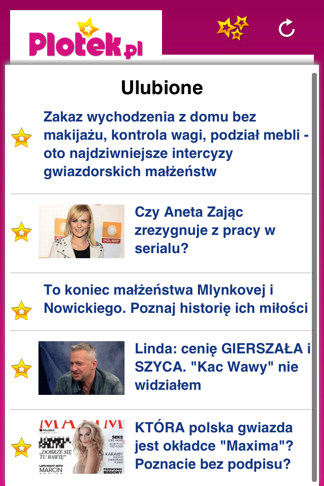Nudzisz się w autobusie lub tramwaju? Przysypiasz na lekcji lub zebraniu? Ściągnij darmową aplikację! Zdjęcia, plotki i skandale z życia gwiazd zawsze z Tobą - gdziekolwiek jesteś, za darmo! Od dziś Doda, Kuba Wojewódzki, Kasia Tusk czy Ania Mucha nie będą mieli przed Tobą żadnych tajemnic. Nasi paparazzi, 24 godziny na dobę depczą celebrytom po piętach. A to, co wytropią, możesz obejrzeć natychmiast na ekranie swojego telefonu. Plotek.pl – najgorętsze newsy w polskim internecie. Oglądaj, czytaj, dziel się ze znajomymi i lajkuj na fejsie. Uwaga: Aplikacja przechowuje lub uzyskuje dostęp do danych na Twoim urządzeniu. Używamy anonimowych informacji zapisanych na Twoim urządzeniu w celach reklamowych i statystycznych. Jeżeli nie wyrażasz na to zgody, nie instaluj aplikacji. Poprzez instalację naszej aplikacji akceptujesz zasady opisane w naszej polityce prywatności : http://serwisy.gazeta.pl/O_nas/1,111259,13569772,Polityka_Prywatnosci_w_zakresie_aplikacji_mobilnych.html